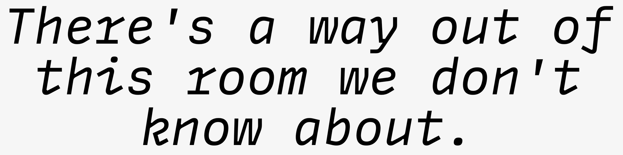 It's remarkable how much the right typeface can shift a piece of writing. I find myself writing a little more thoughtfully, almost as though I'm trying to write something worthy of the carefully designed letters appearing on my screen. All of these, you might notice, are monospace or near-monospace fonts; they're all particularly writerly. I'm not tempted to slather my manuscripts in anything you might find on a movie poster or a book cover; I like a studious font, so I feel a bit more like I know what I'm doing.